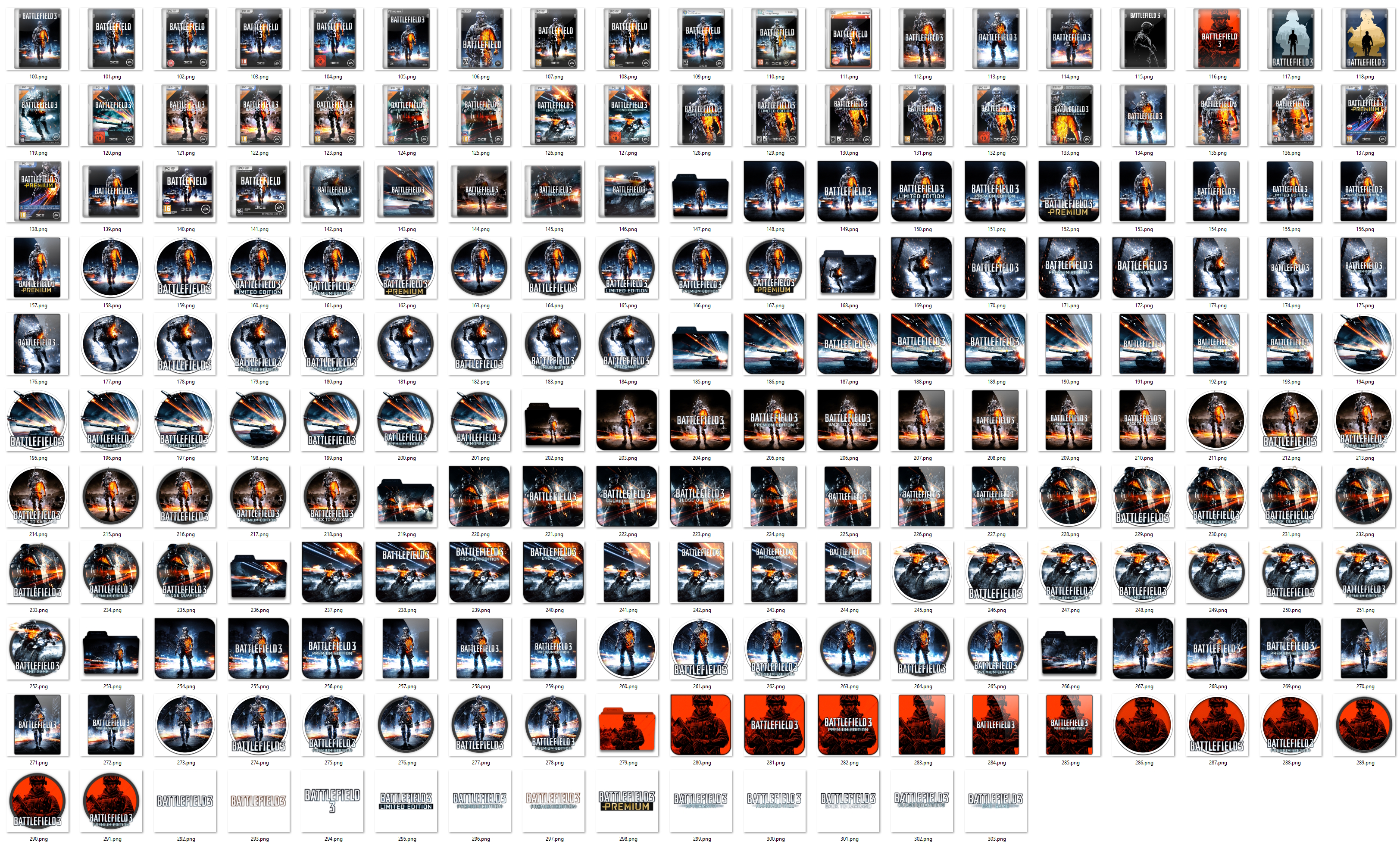 Набор иконок для рабочего стола к игре Battlefield 3. В наборе присутствуют иконки в формате Png и Ico, так же все они имеют разрешение 512 на 512 пикселей. Вы можете бесплатно скачать набор по ссылке ниже с сервиса Гугл.Диск.