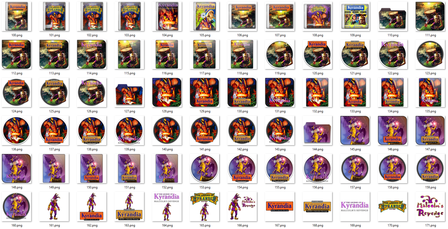 Набор иконок для рабочего стола к игре The Legend Of Kyrandia, Book Three: Malcolm's Revenge. В наборе присутствуют иконки в формате Png и Ico, так же все они имеют разрешение 512 на 512 пикселей. Вы можете бесплатно скачать набор по ссылке ниже с сервиса Гугл.Диск.